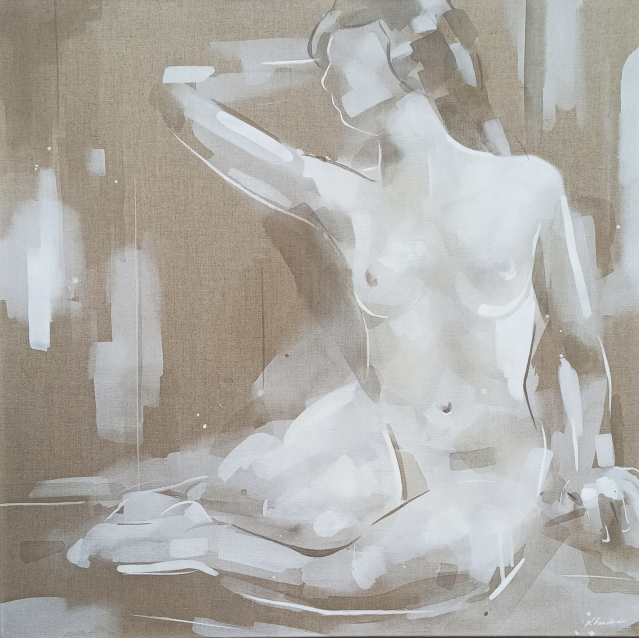 100 x 100 cm, acrylic, watercolor on linen canvas, 2025